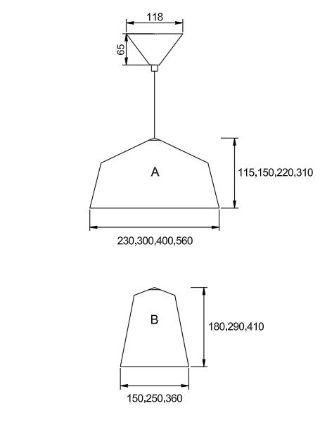 A) 230x115 , 300x150 , 400x220 , 560x310